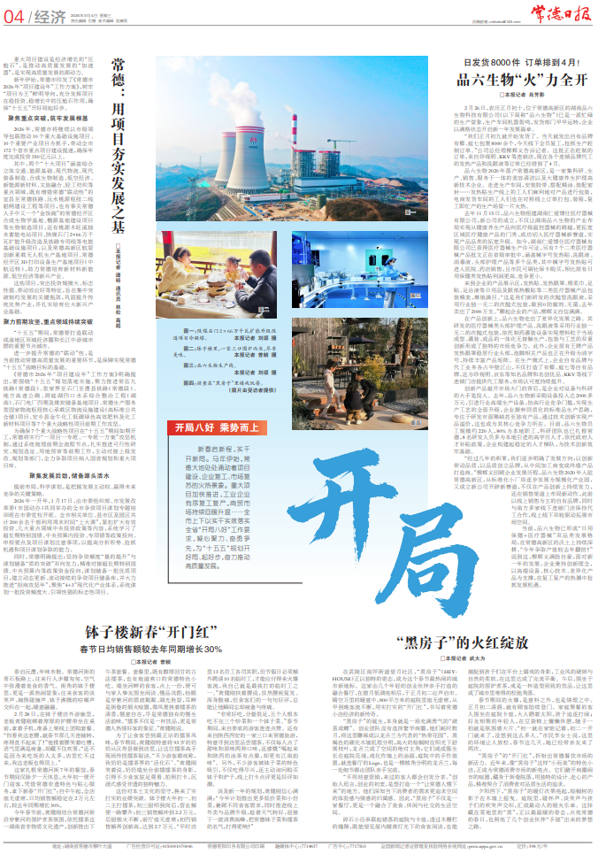新春启新程,实干开新局。马年伊始,常德大地处处涌动着项目建设、企业复工、市场复苏的火热景象。重大项目加快推进,工业企业有序复工复产,商贸市场持续回暖升温……全市上下以实干实效落实全省“开局八好”工作要求,凝心聚力、奋勇争先,为“十五五”规划开好局、起好步,奋力推动高质量发展。
