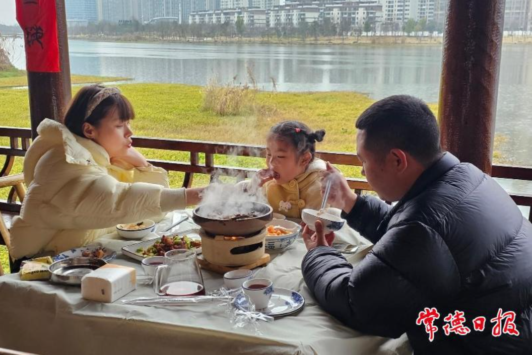 “非常好吃,分量很足,五个人根本吃不完三个炒菜和一个钵子菜。”春节期间,来自娄底的游客连连点赞。还有来自陕西西安的一家三口来常德旅游,特意寻到店里品尝擂茶,不仅每人点了甜味和原味两种口味,还感慨“喝起来和陕西的油茶有点像,却更有江南韵味”。另外,不少游客被钵子菜的特色吸引,不仅吃得尽兴,还主动询问购买钵子和炉子,线上打卡点评更是好评如潮。