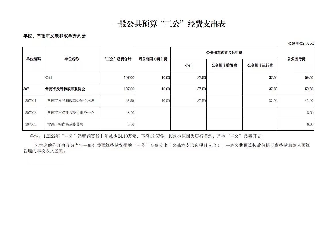 常德市发展和改革委2022年一般公共预算“三公”经费支出情况表