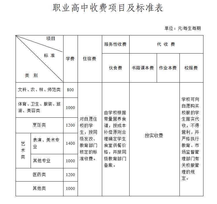 2.职业高中收费项目及标准表